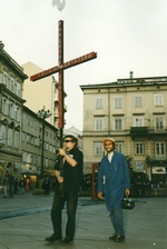 Time of corruption and stealing in Croatia. Two characters act as a corrupted politician/businessman (Branko Gulin) and a deprived working class member (Josip Pino Ivancic). The performance is taking place on the city squares where the corrupted praises the state carrying a cross with a sign 'I love Croatia', while the worker is playing Pink Floyd's 'Money' on his recorder.